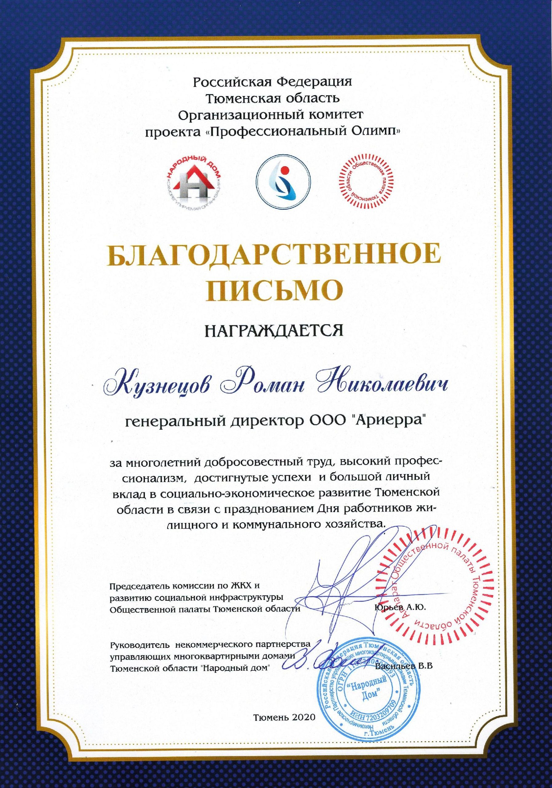 Руководство компании ООО «Автоград СОЛ» выражает благодарность компании ООО «Ариерра» за успешное сотрудничество и высокое качество обслуживания.