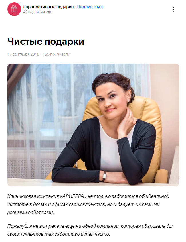 Публикация на канале по корпоративным подаркам, сентябрь, 2018 год